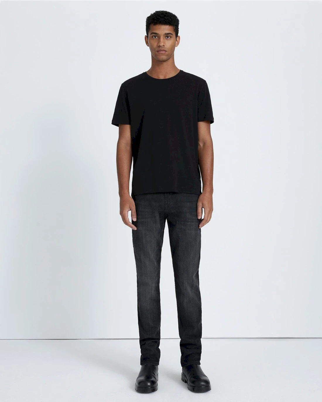 Cut from our signature Japanese denim, this pair is made with hollow fibers for an ultra-lightweight feel, breathability and uncompromised durability. Made effortless in a modern slim fit from hip to hem, this light black wash features distressing throughout. Pair it with a tee and jacket for a weekend-ready look.