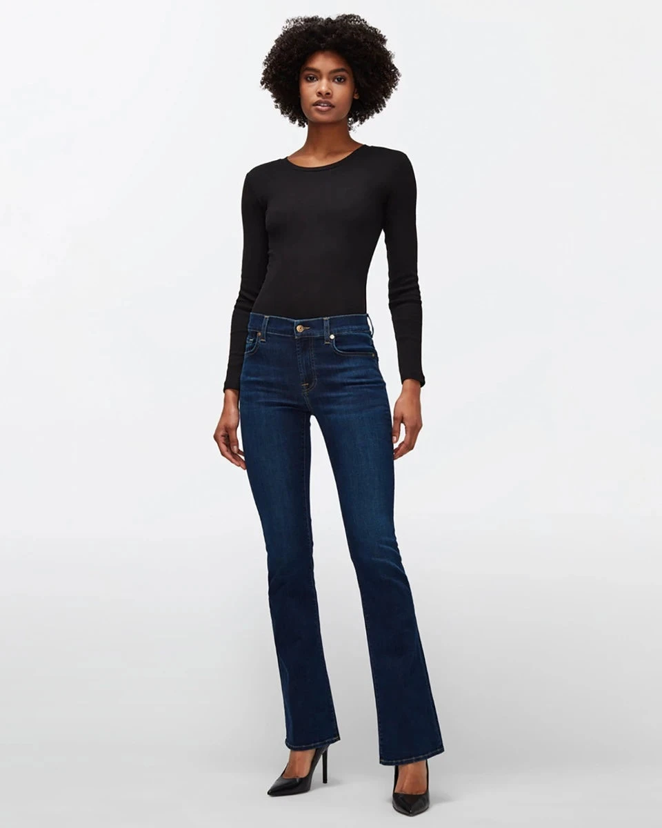 This version of our Kimmie Bootcut boasts a classic silhouette with a mid-rise waist. Done in a dark wash with an embellished back pocket, pair it with sleek leather for elevated fall styling. Made as a weightless denim that feels super-soft and light against the skin, our Better B(Air) fabrication is reimagined with organic cotton and recycled properties.