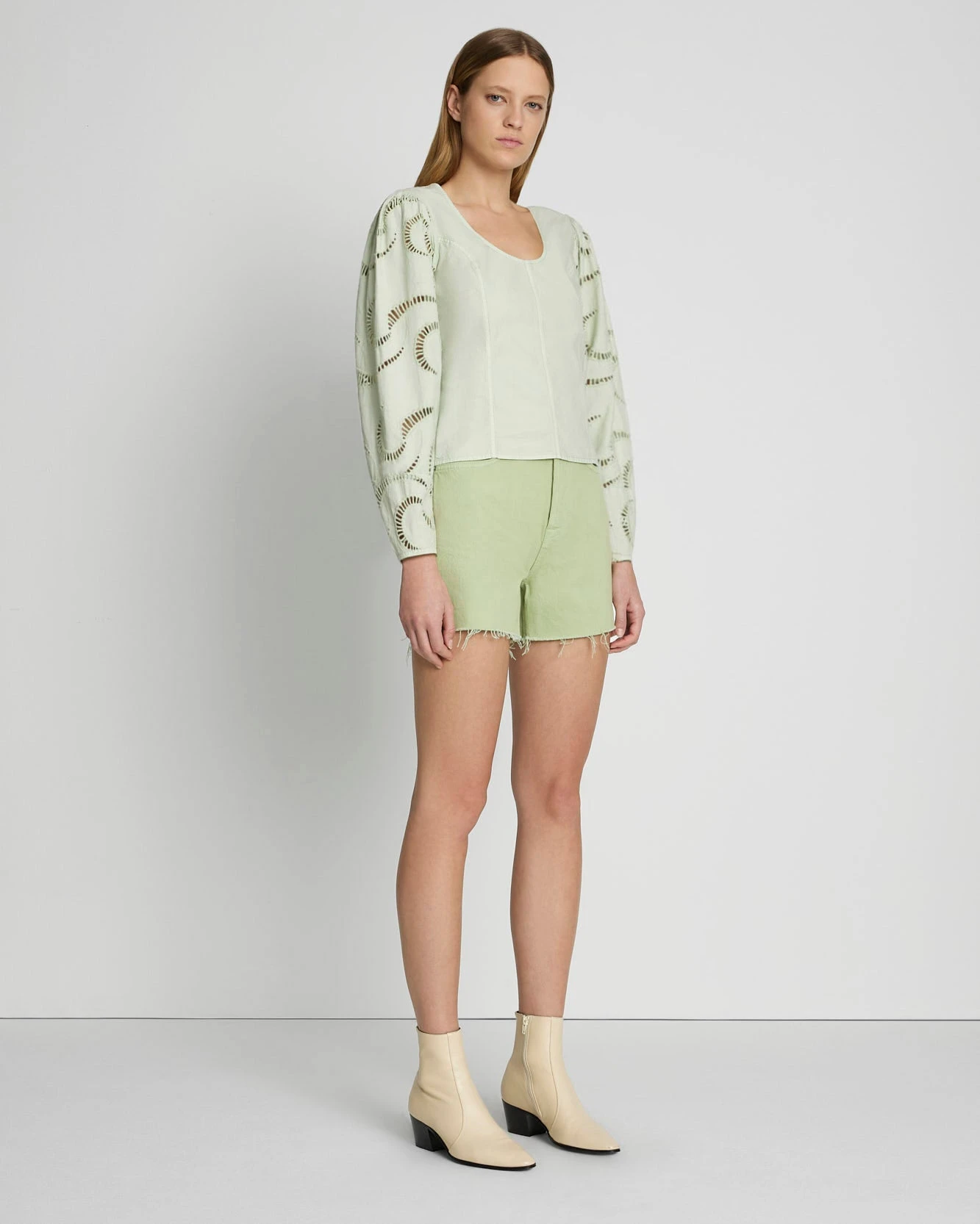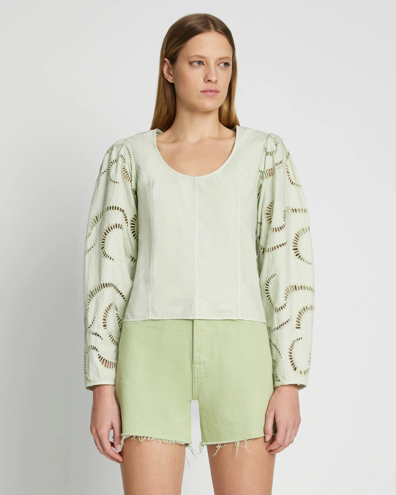 7 For All Mankind Balloon Sleeve Eyelet Top In Seafoam