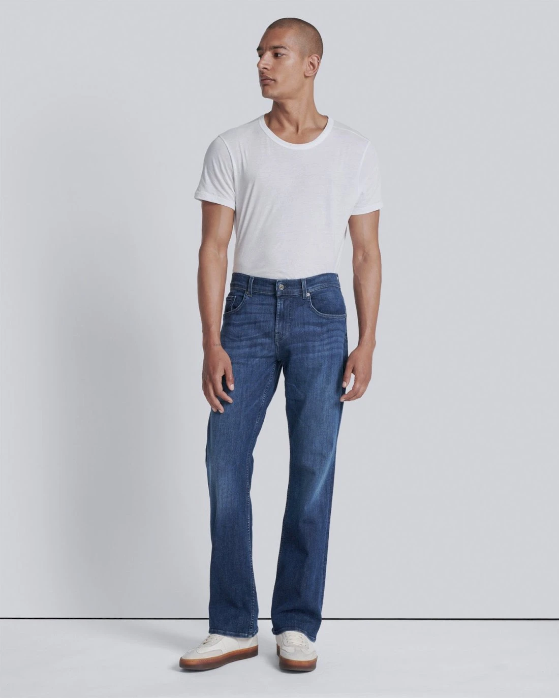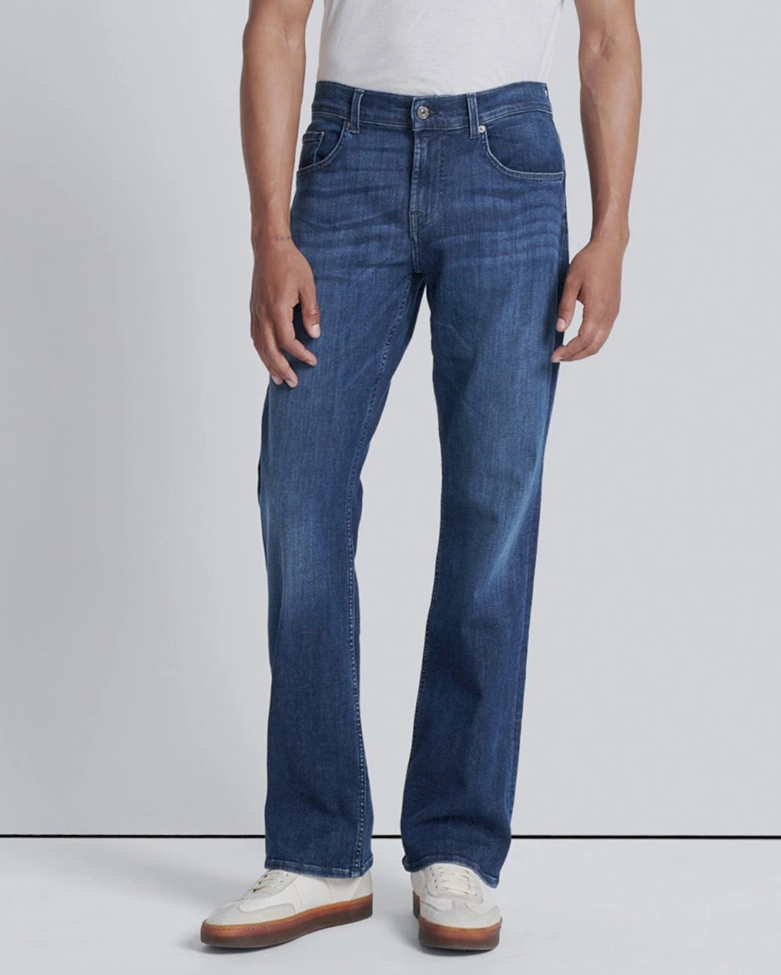Our modern bootcut silhouette has an overall relaxed feel without being too loose. This pair of men’s jeans is crafted in our signature premium denim with comfort stretch for all-day wear. This rich indigo wash easily transitions from casual to polished style.