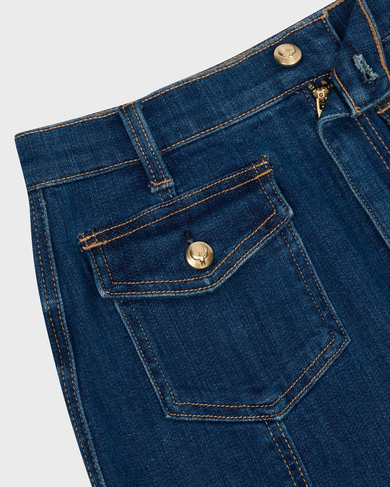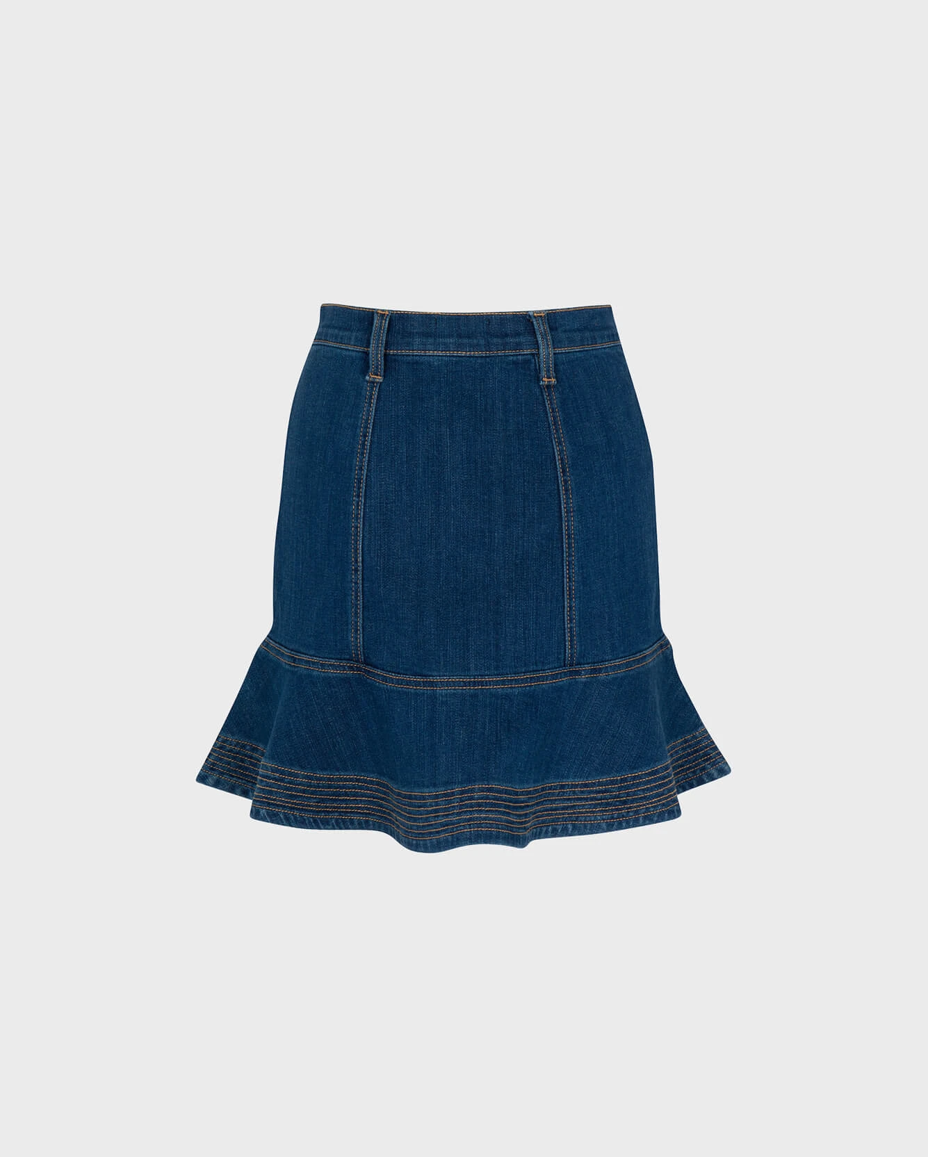 This warm-weather essential offers flirty structure in our premium stretch denim, with a seamed design, front flap patch pockets, and a flounce hem. An easy piece to see you through the season, for both elevated and casual looks.