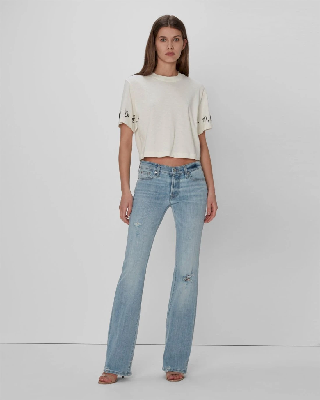 Our bestselling original jean in a perfectly-faded blue wash. This pair of women’s denim is crafted from our soft, broken twill denim that offers medium stretch for all-day comfort. This iconic low-rise bootcut is marked by destroyed details, giving it that well-worn vibe you love. Complete this pair of stylish denim with a summery peasant top.