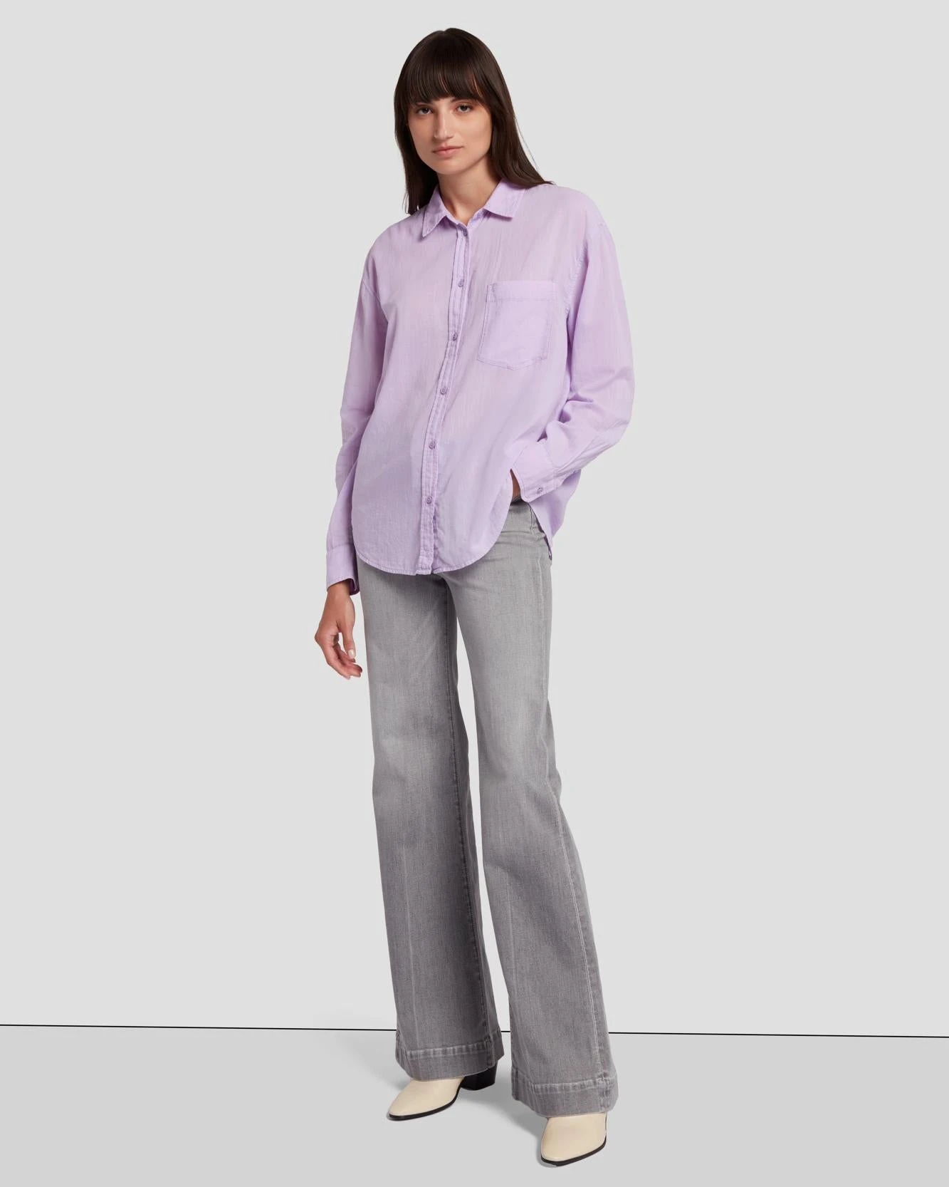 7 For All Mankind Classic Button Up Shirt In Lavender