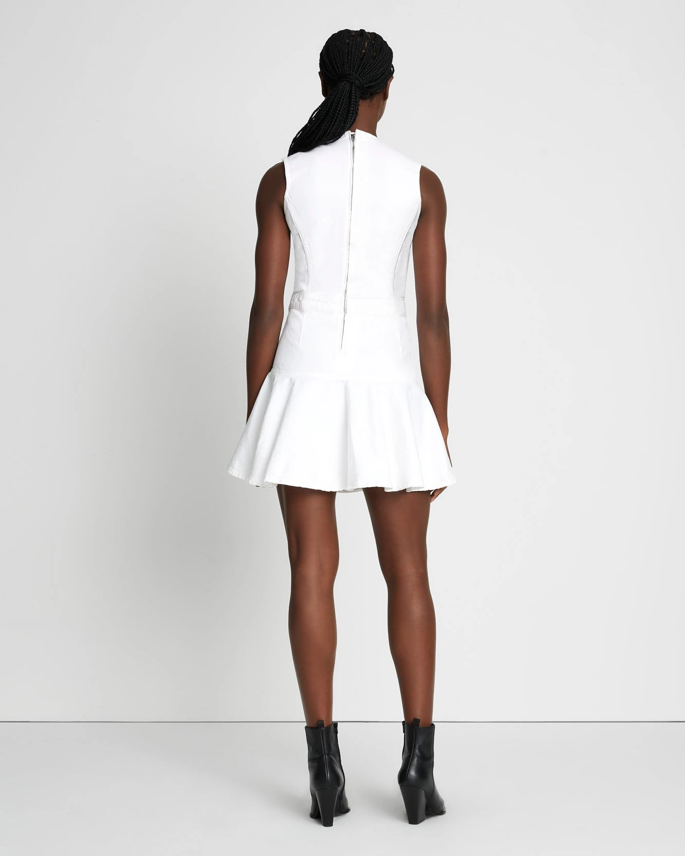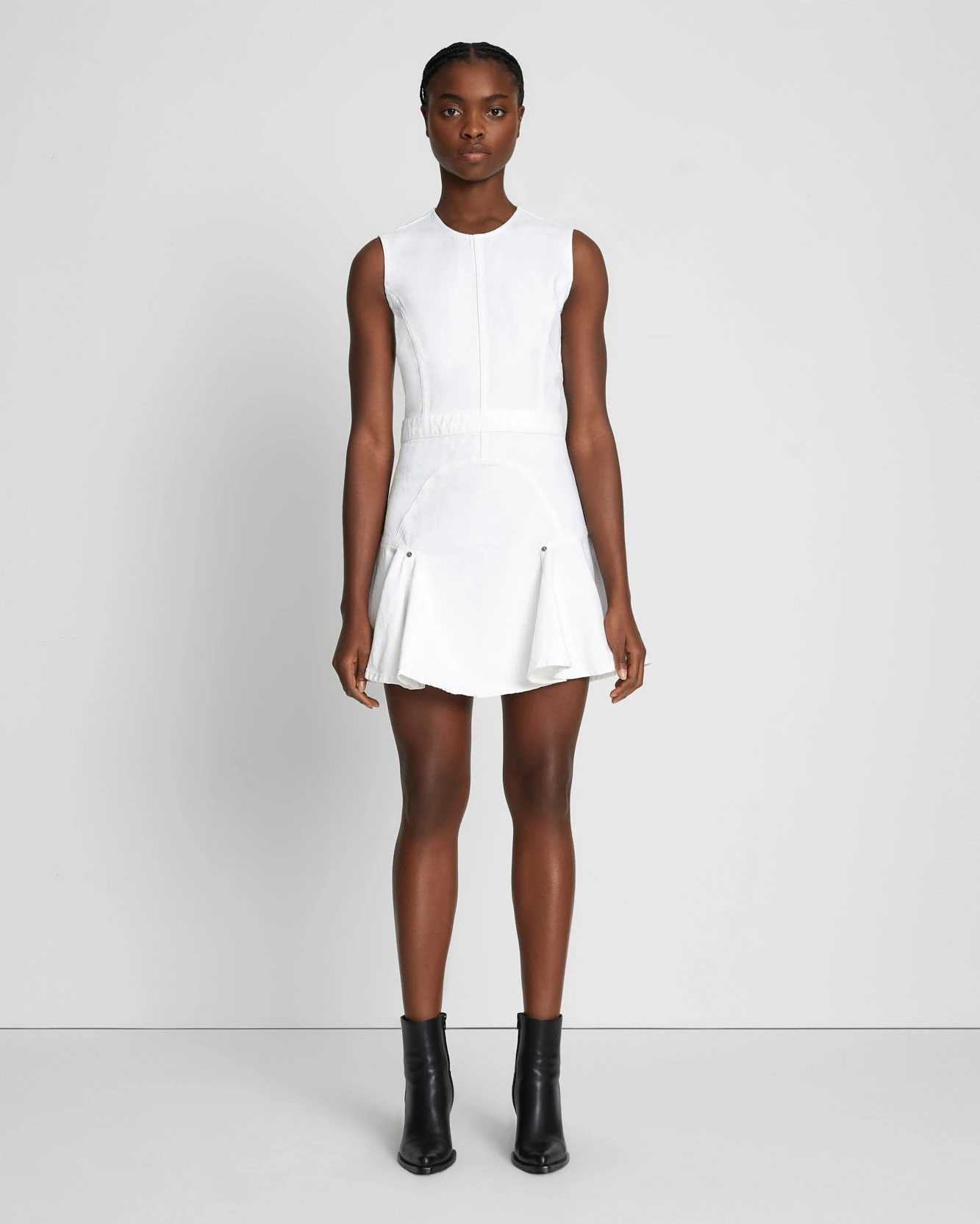 7 For All Mankind Denim Flounce Dress Mini In Brilliant White