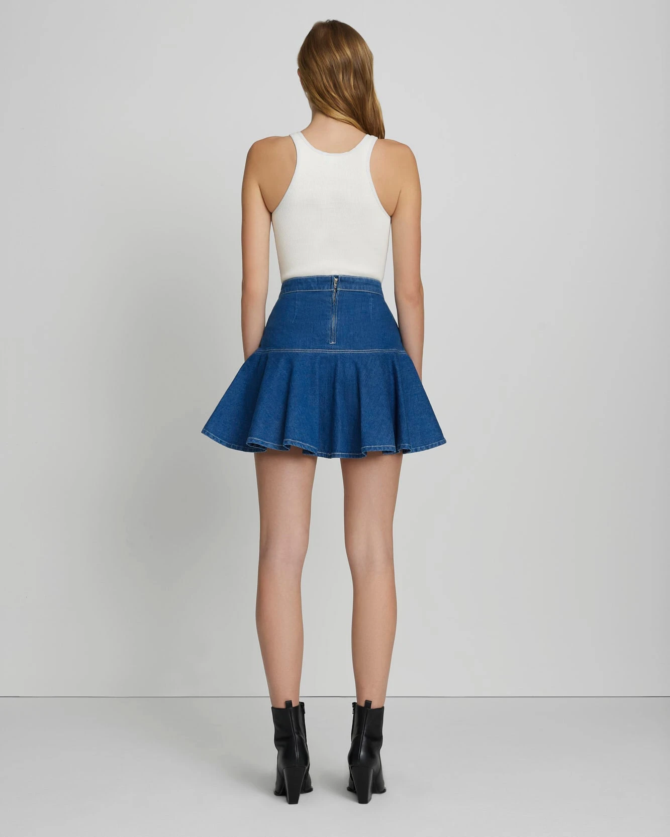 7 For All Mankind Denim Flounce Skirt In Aquamarine