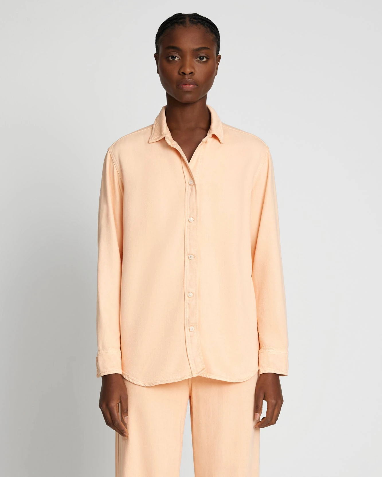 A feminine take on the classic button-down shirt with all of the polish and none of the fuss. Made from eco-friendly Denim Lustre, this lightweight, collared button-down has a relaxed fit and features a slightly dropped shoulder and a patch pocket at the chest.