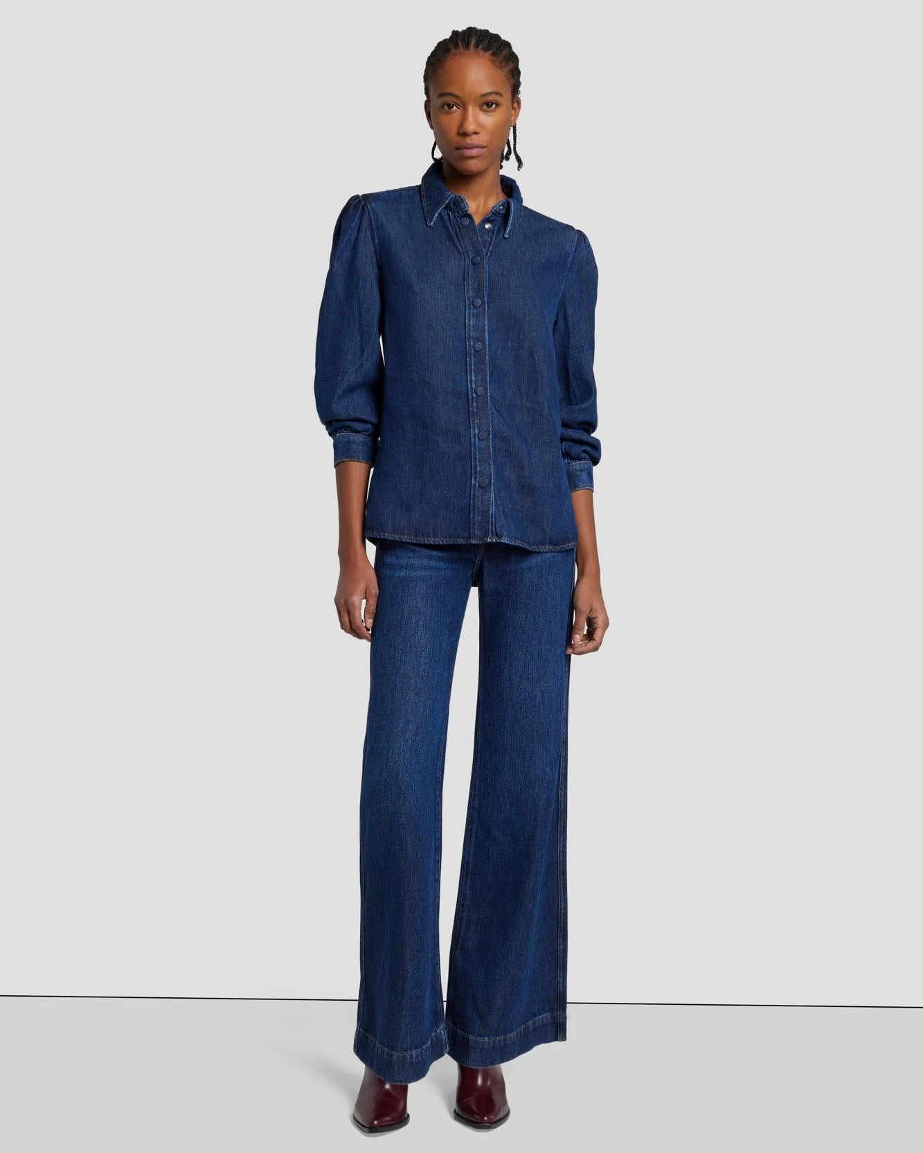 7 For All Mankind Denim Lustre Puff Sleeve Shirt In Poppy