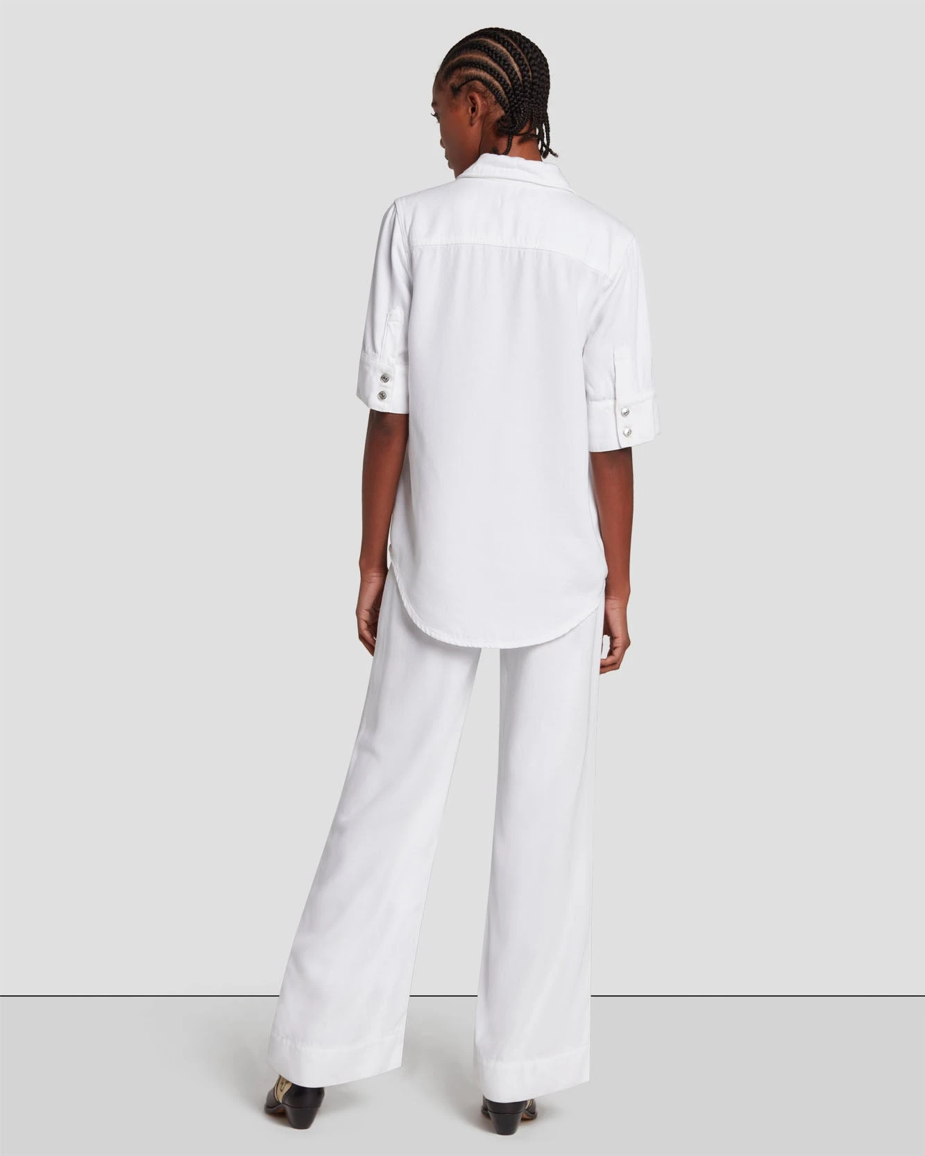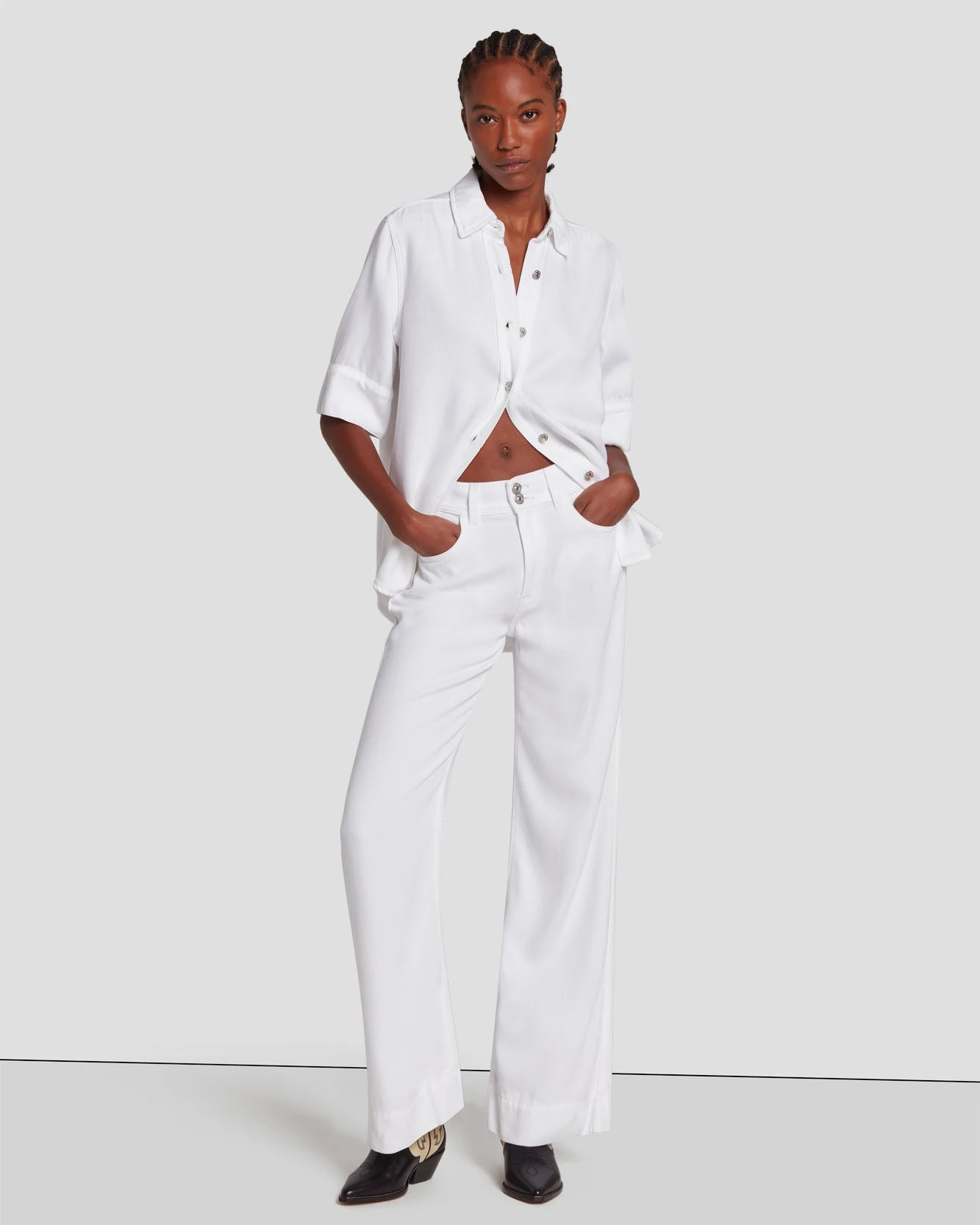 7 For All Mankind Denim Lustre Short Sleeve Shirt In Brilliant White
