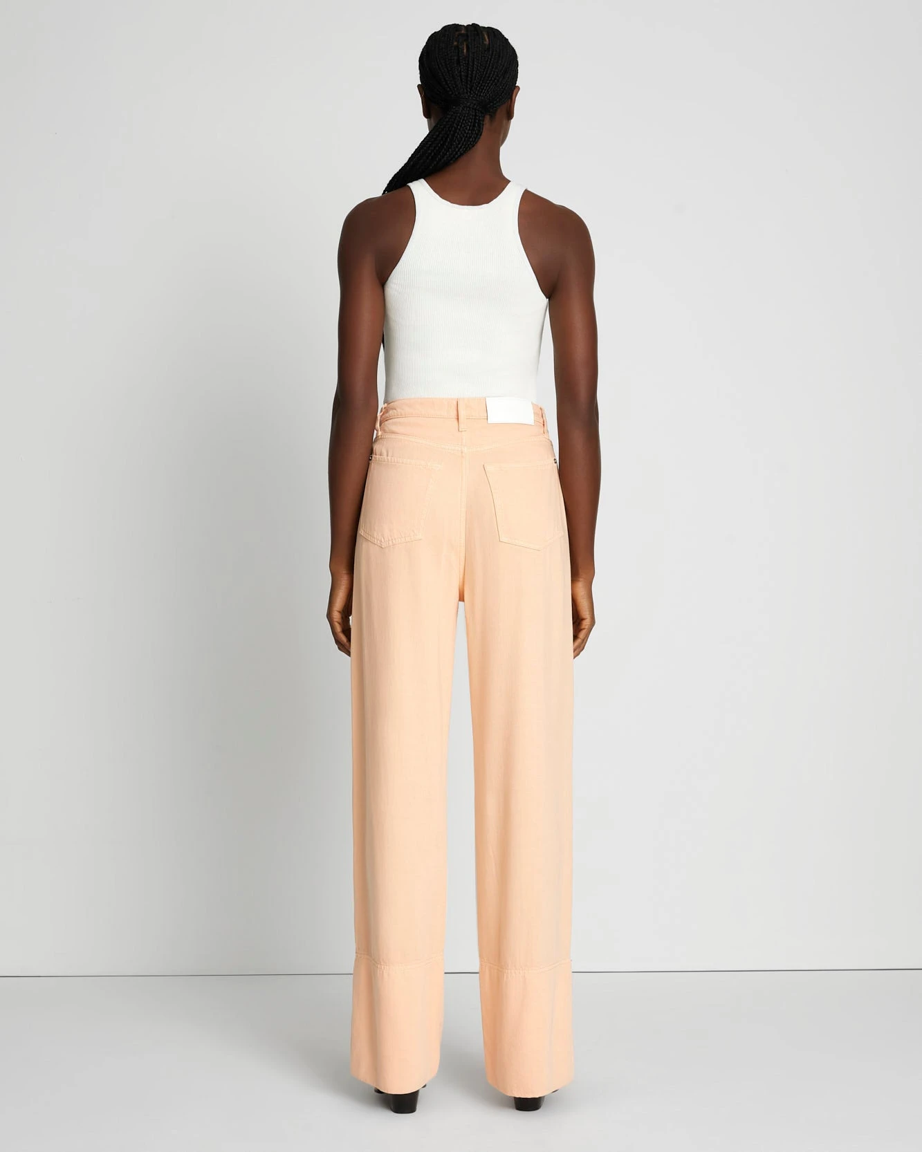Our Denim Lustre collection is crafted from biodegradable and compostable fabrics for breathable long-lasting comfort and a super-soft hand feel. The high-rise denim trouser is already a classic. This jean features a dark wash, a voluminous wide-leg fit, and modern side slit details at the hem. With an elongated silhouette, it flatters every single time.