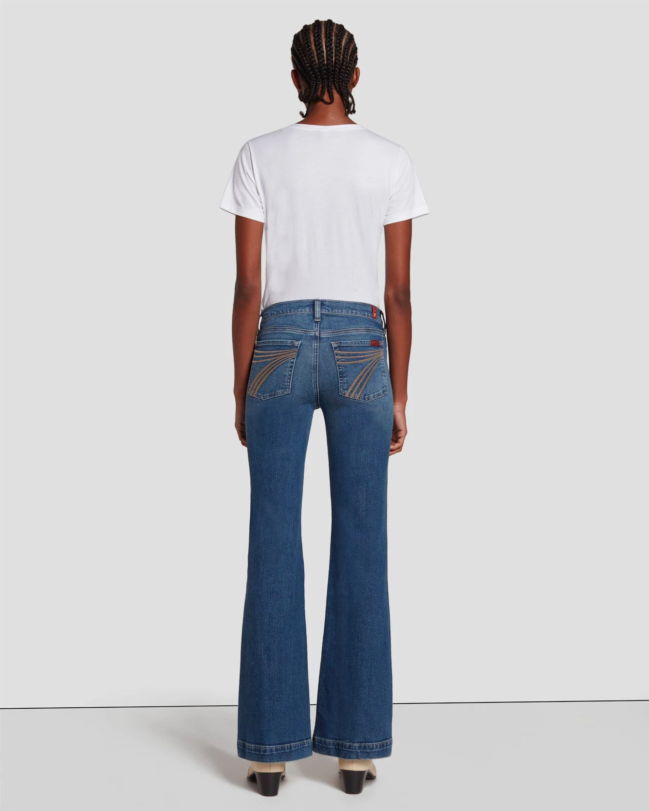 Our ever-popular trouser silhouette is crafted in premium signature denim with comfort stretch for all-day wear. Offered in a saturated dark wash complete with our signature 7 embroidered back pockets, this pair of women’s denim features versatility and comfort for any moment. These are the jeans you’ll be pairing with everything in your closet.