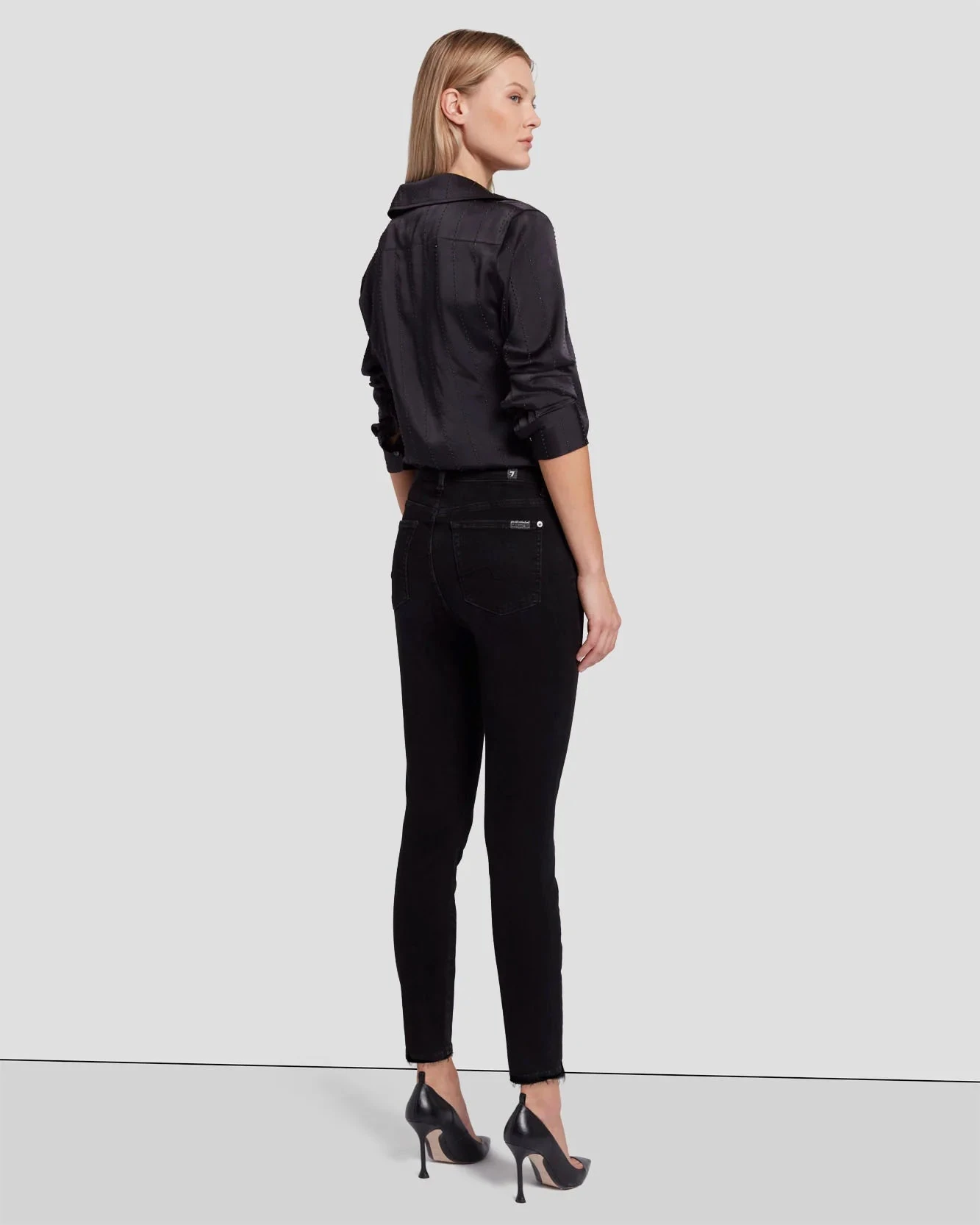 7 For All Mankind High Waist Ankle Skinny In Black Rose