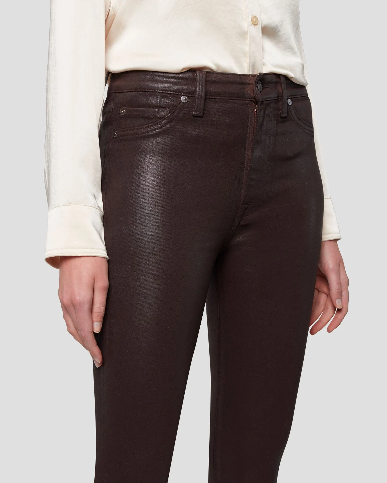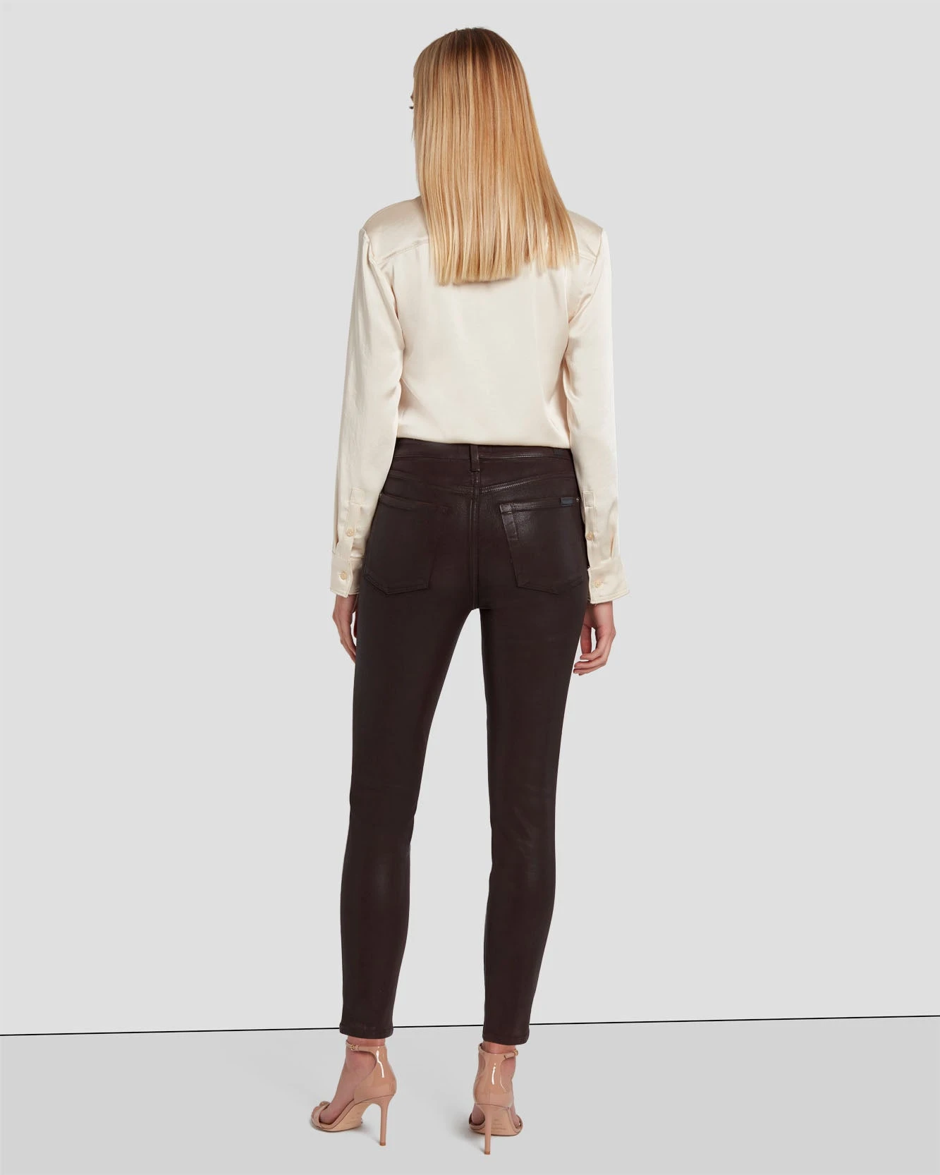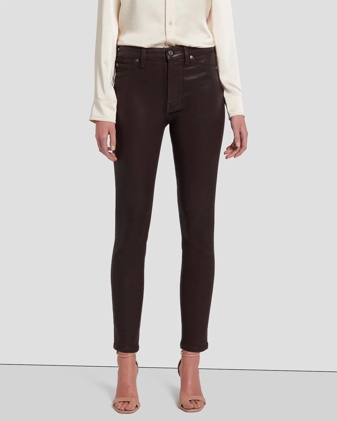 7 For All Mankind High Waist Ankle Skinny In Coated Chocolate