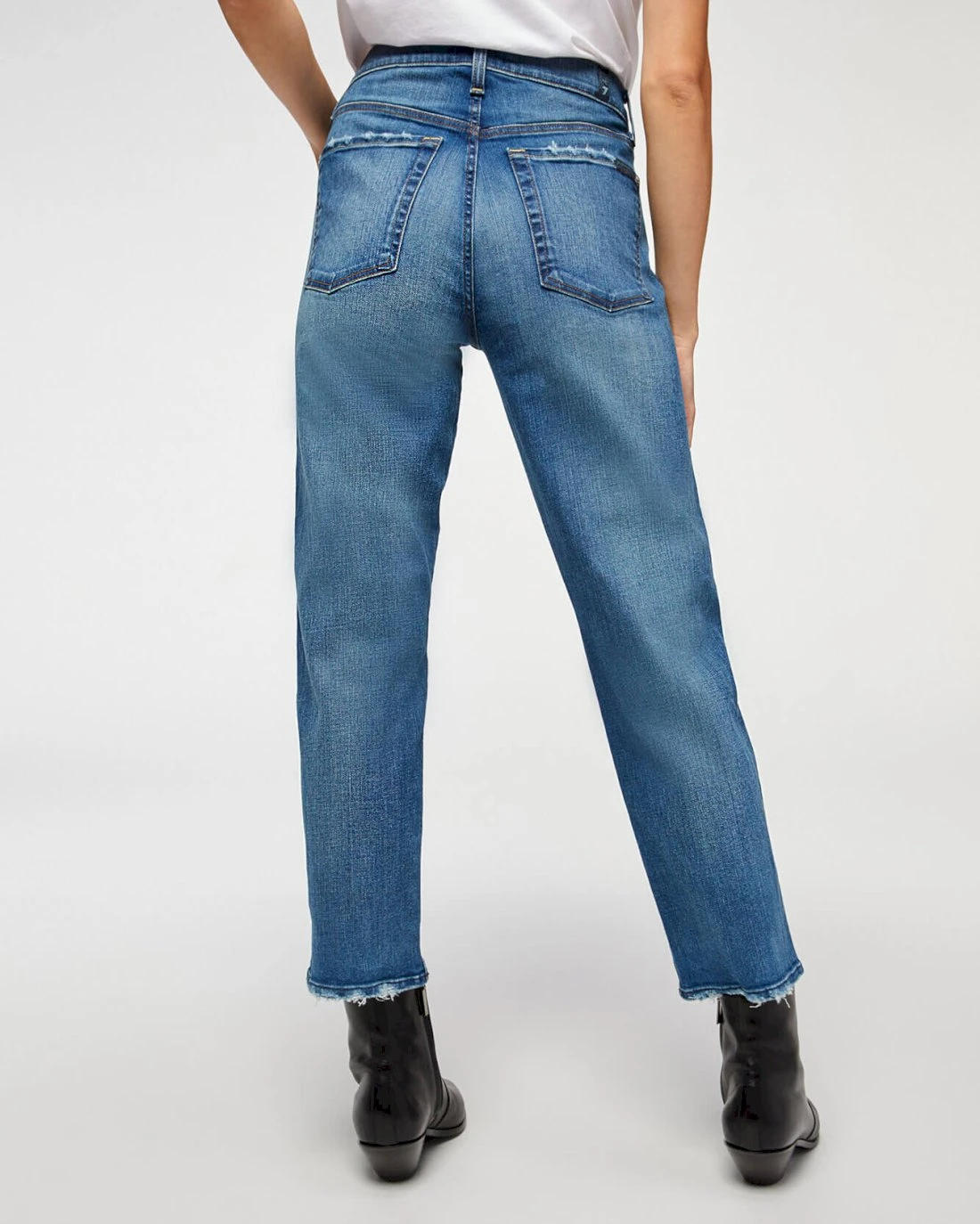 Our best-selling high waist cropped straight, distressed with a “worn-for-decades” vibe. Crafted in a medium indigo wash with moderate stretch for lasting comfort, it’s the laidback pair that looks like you’ve had it for years.