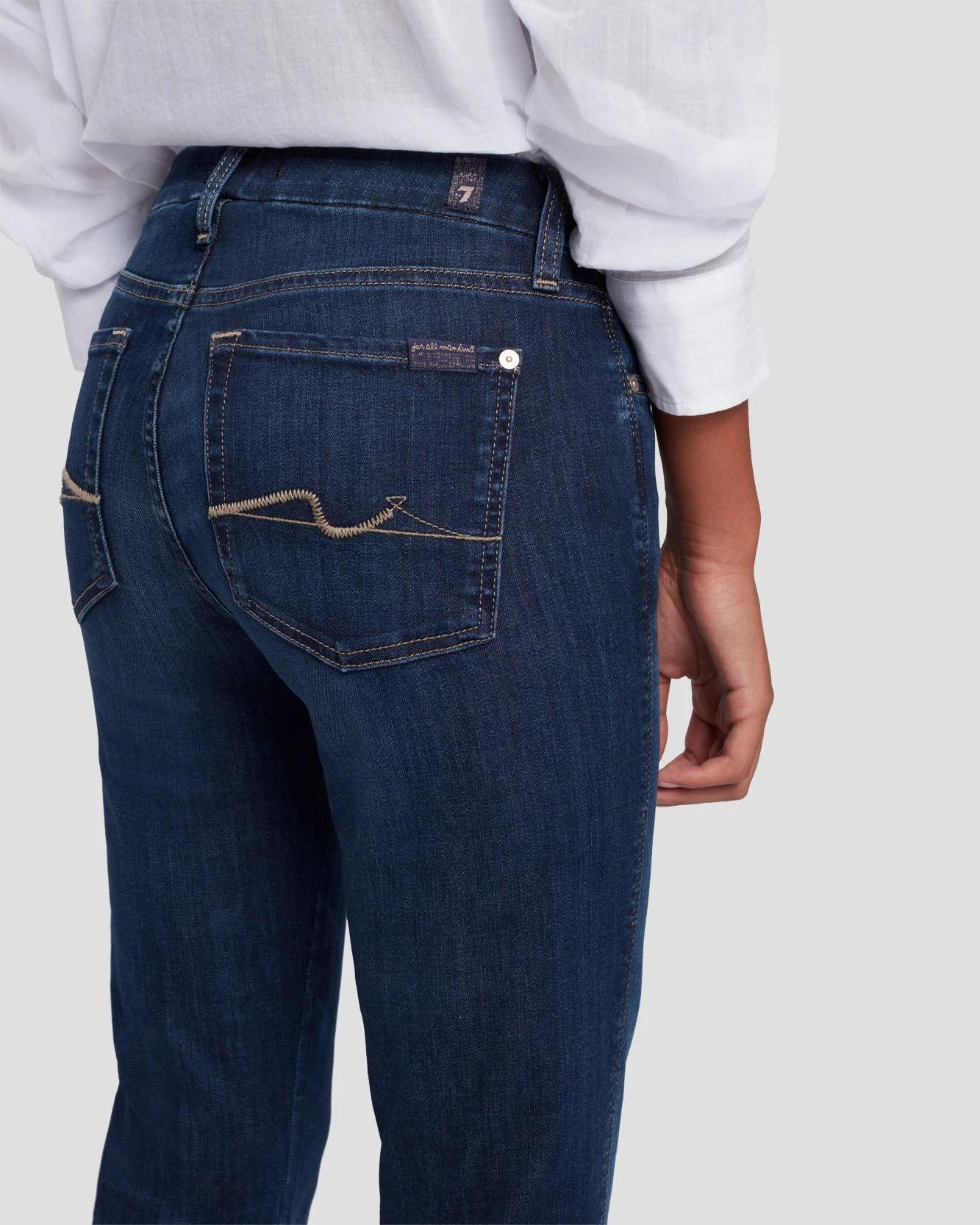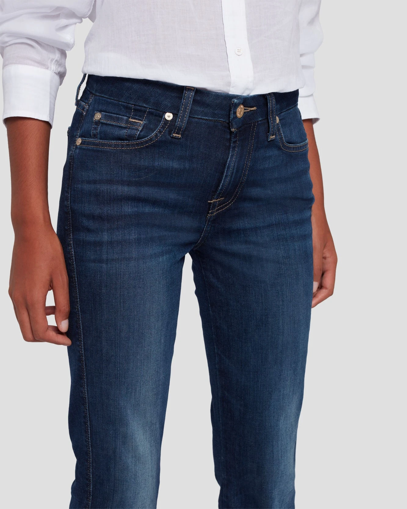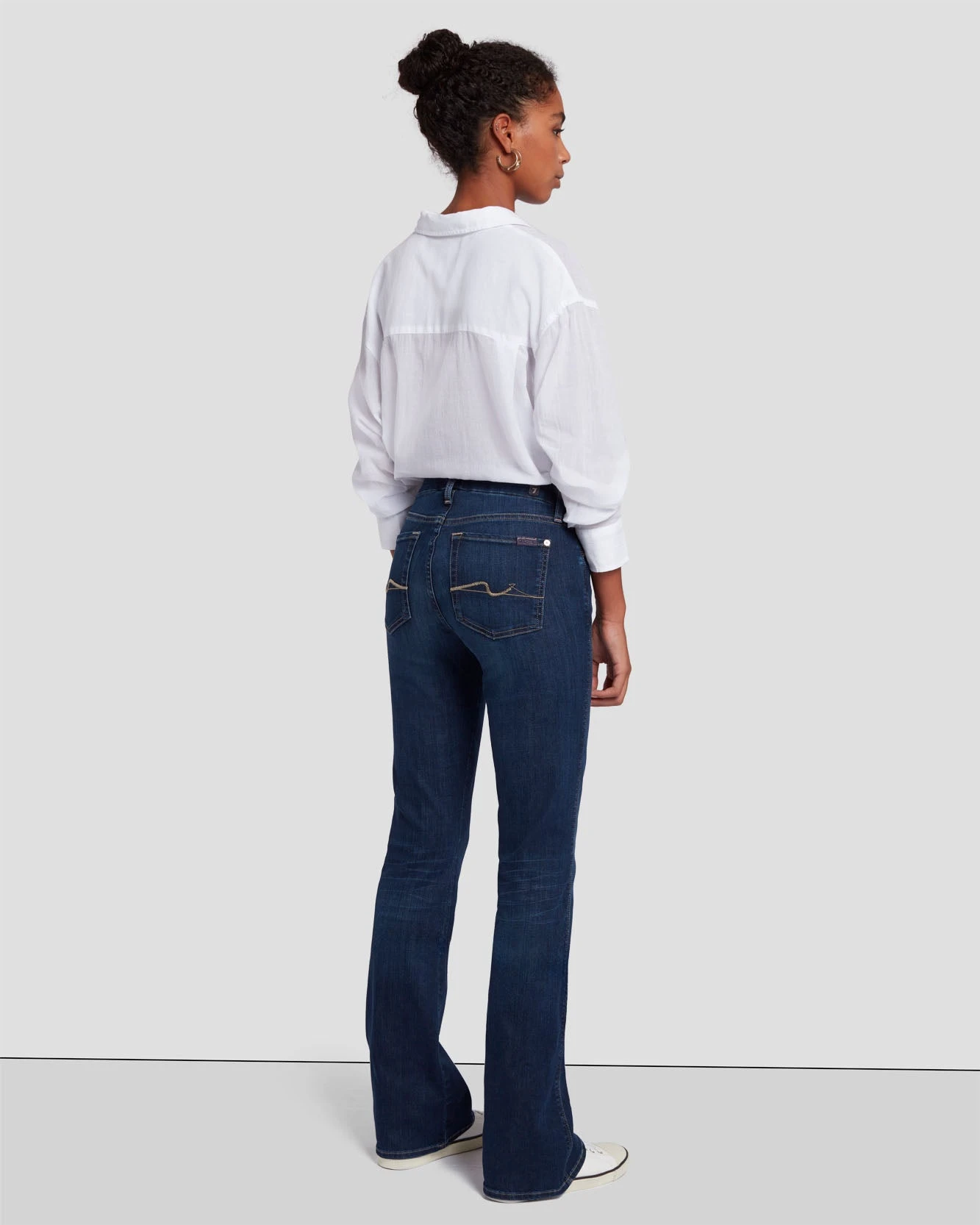 Our mid-rise modern bootcut is slim-fitting through the thighs before subtly flaring out at the knee. Crafted from our signature stretch denim for lasting comfort, this dark blue wash is a timeless must-have.