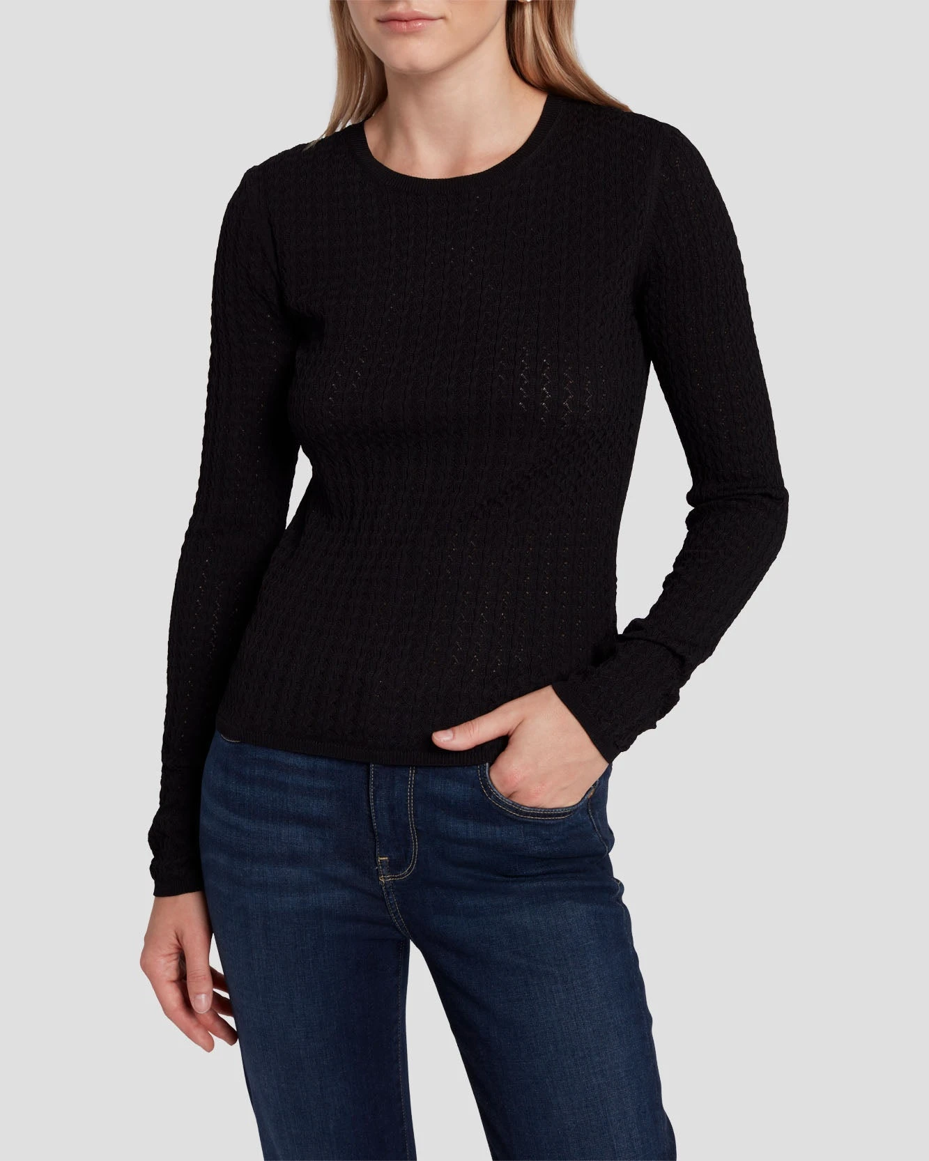 Luxe, lightweight texture. This fitted top comes in a stretchy, compression knit with thin ribbing on the neckline, cuffs and hem. This black version is the ultimate elevated basic.