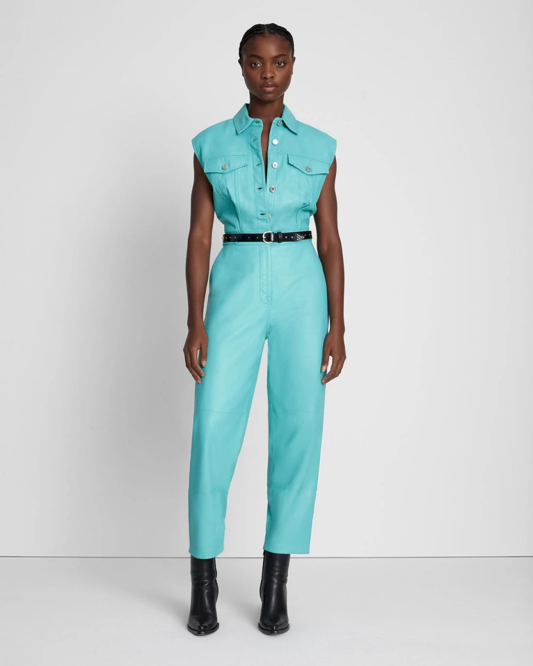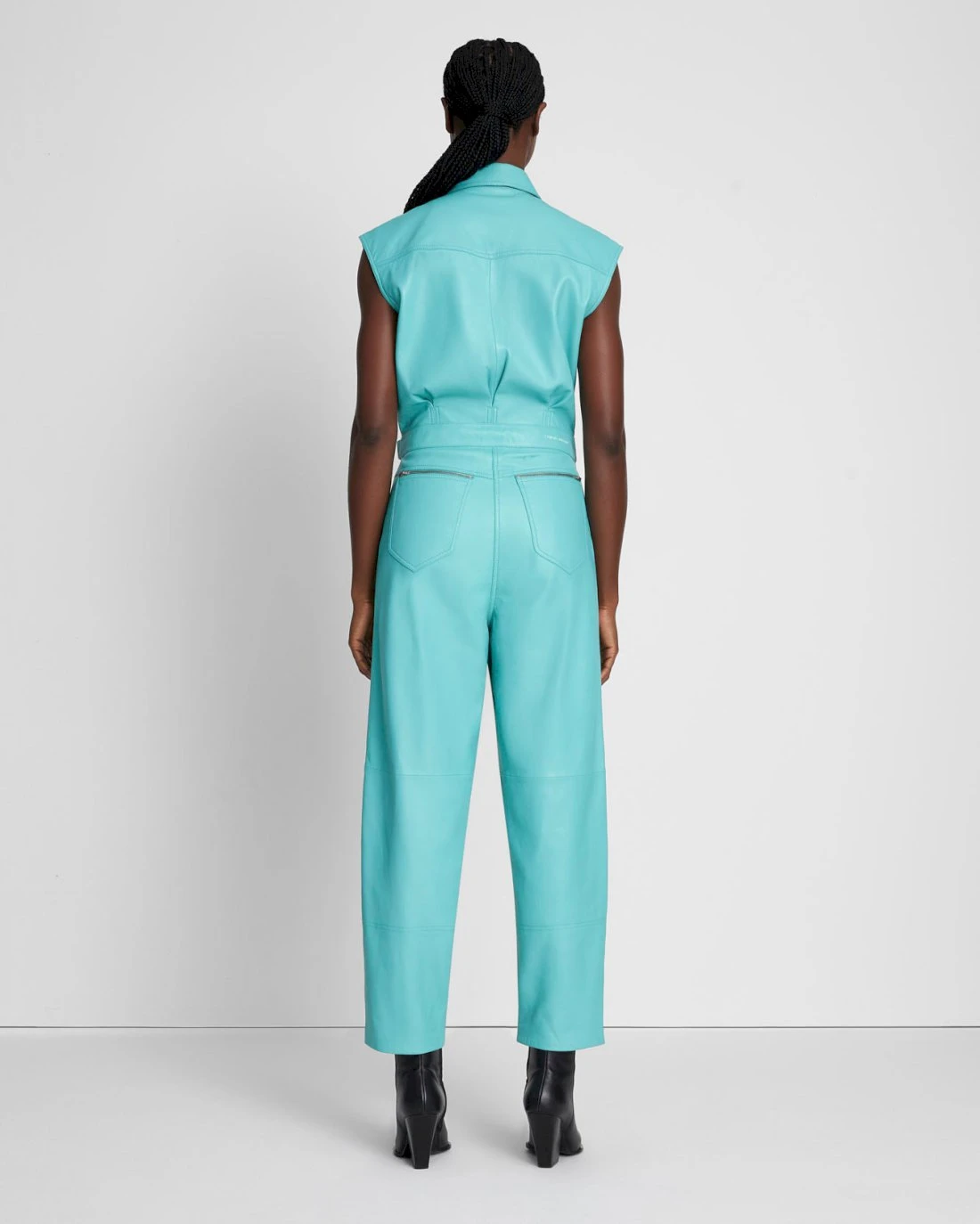 7 For All Mankind Leather Sleeveless Balloon Jumpsuit In Atlantis