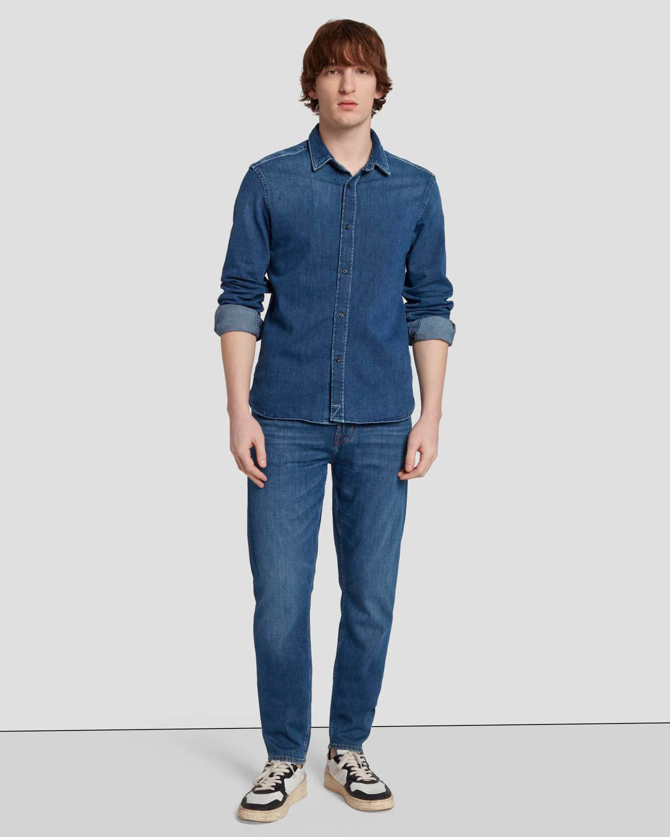 7 For All Mankind Left Hand Denim Shirt In Evasion