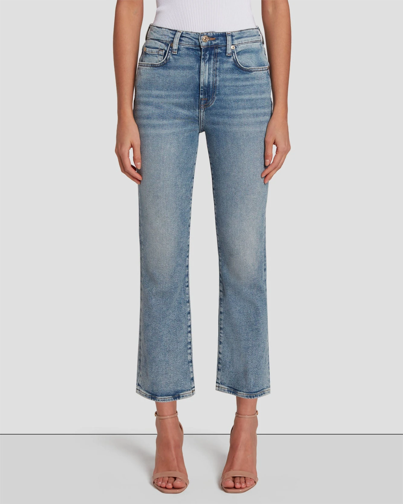 With its flattering cropped kick flare, meet our well-loved High Waist Slim Kick silhouette in a medium wash with whiskering and fading. Made from our signature Luxe Vintage, comfortable stretch denim with a vintage aesthetic. Perfect for showing off strappy heels or sleek boots, this pair of women’s denim is going to be your next favorite style that you’ll always reach for.