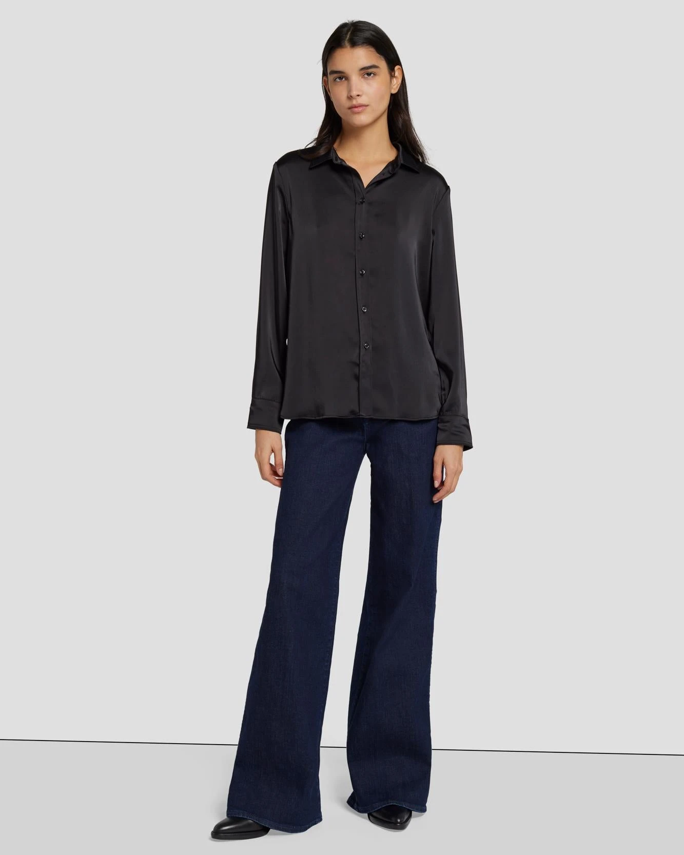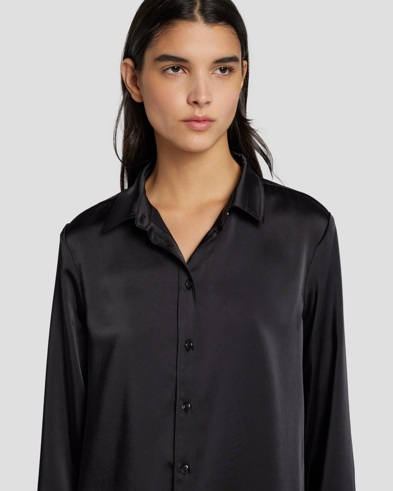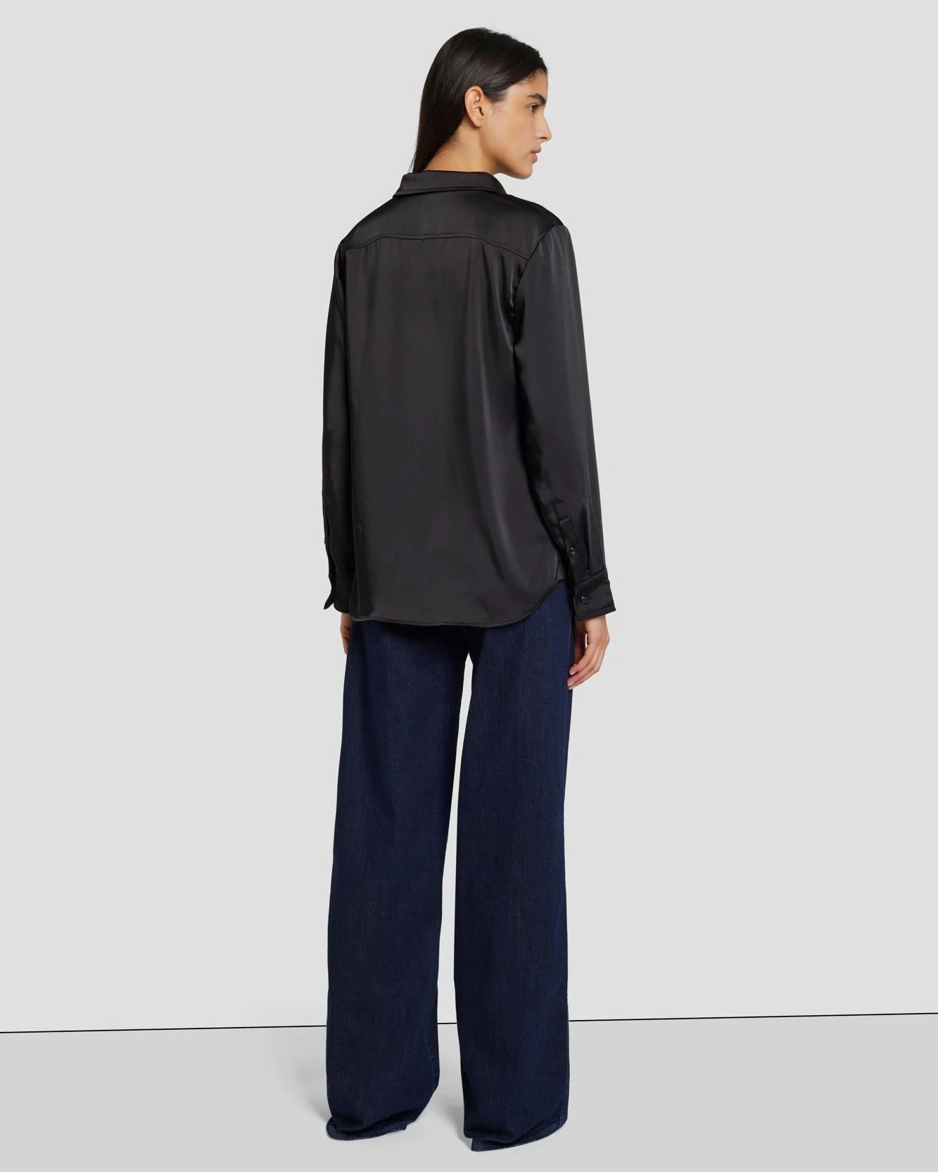 A refined twist on your everyday button-up. Featuring just the right amount of drape, this Satin Shirt can be worn open over fitted tops for a casual feel or buttoned up with trousers for an elevated finish. The choice is yours.
