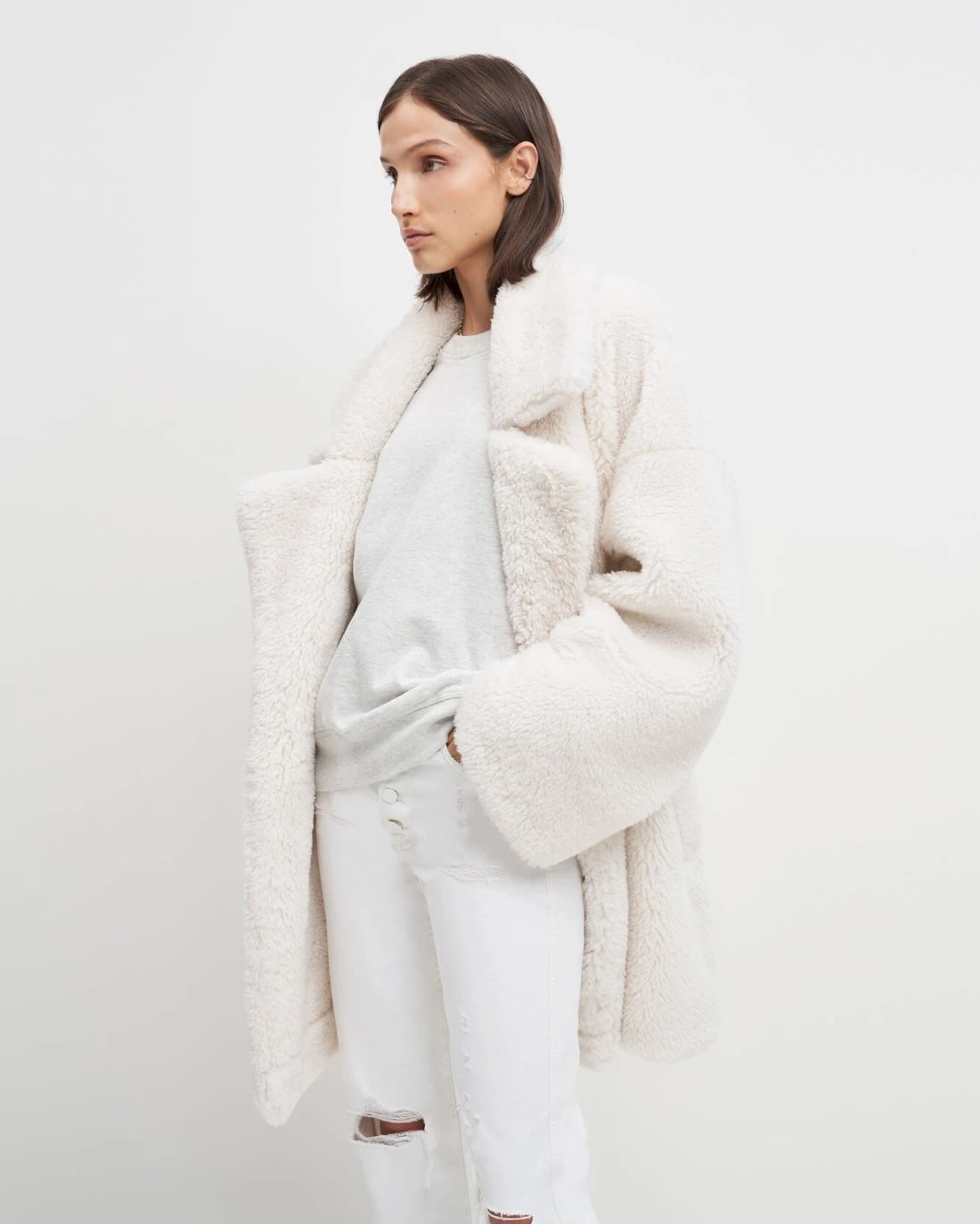 7 For All Mankind Shearling Cozy Coat In Ivory