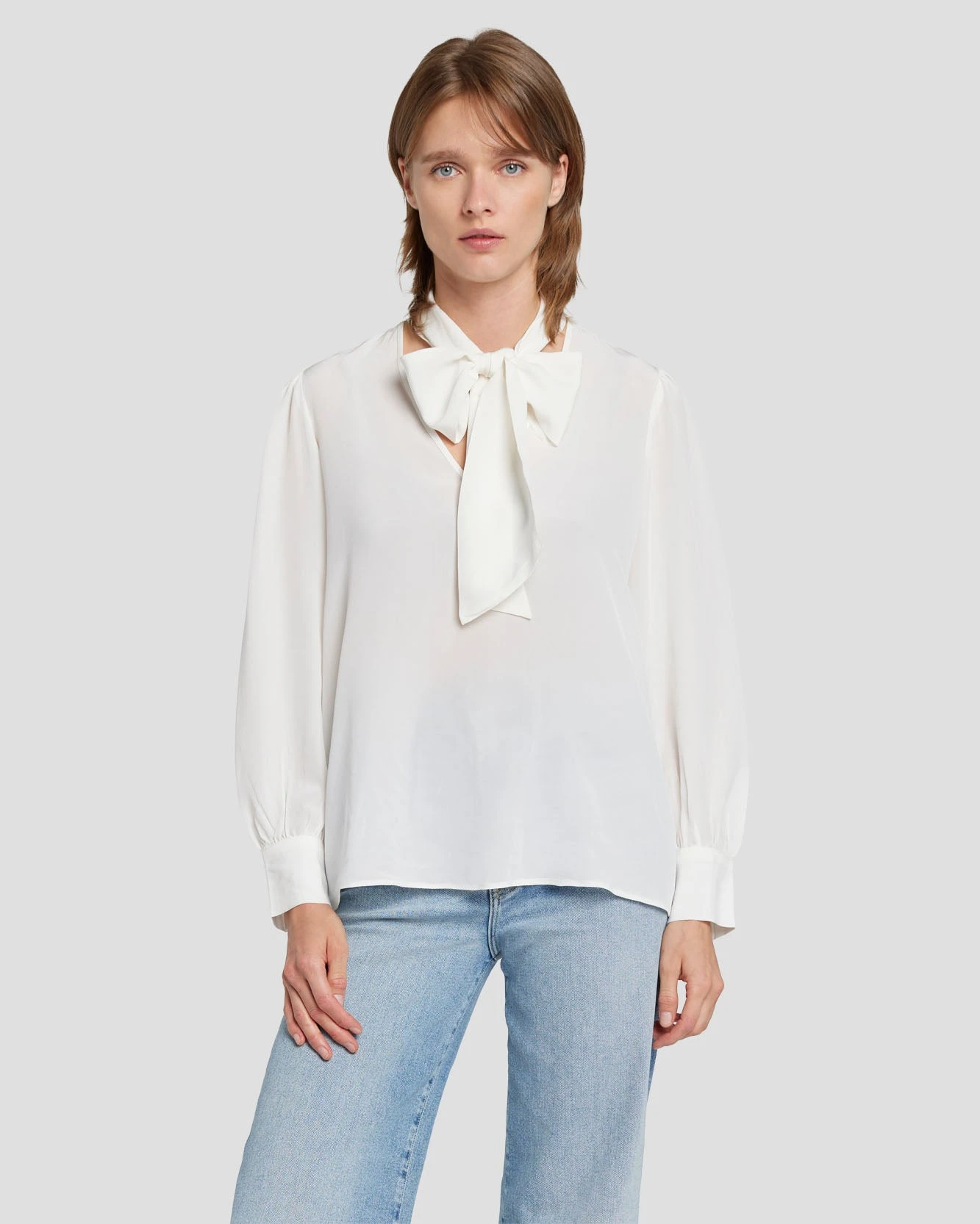 7 For All Mankind Silk Tie Neck Blouse In Cream