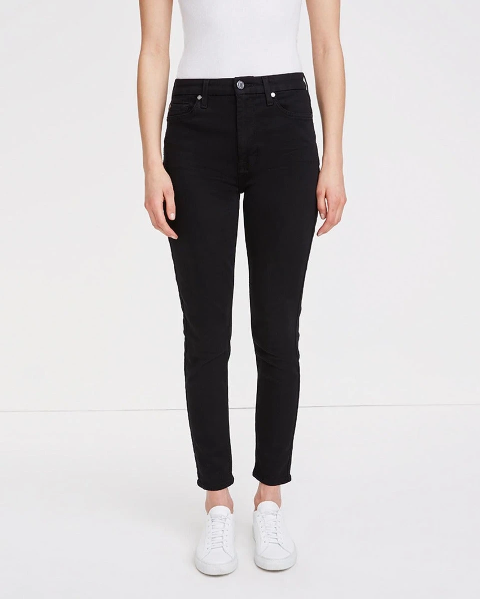 7 For All Mankind Slim Illusion High Waist Ankle Skinny In Luxe Black