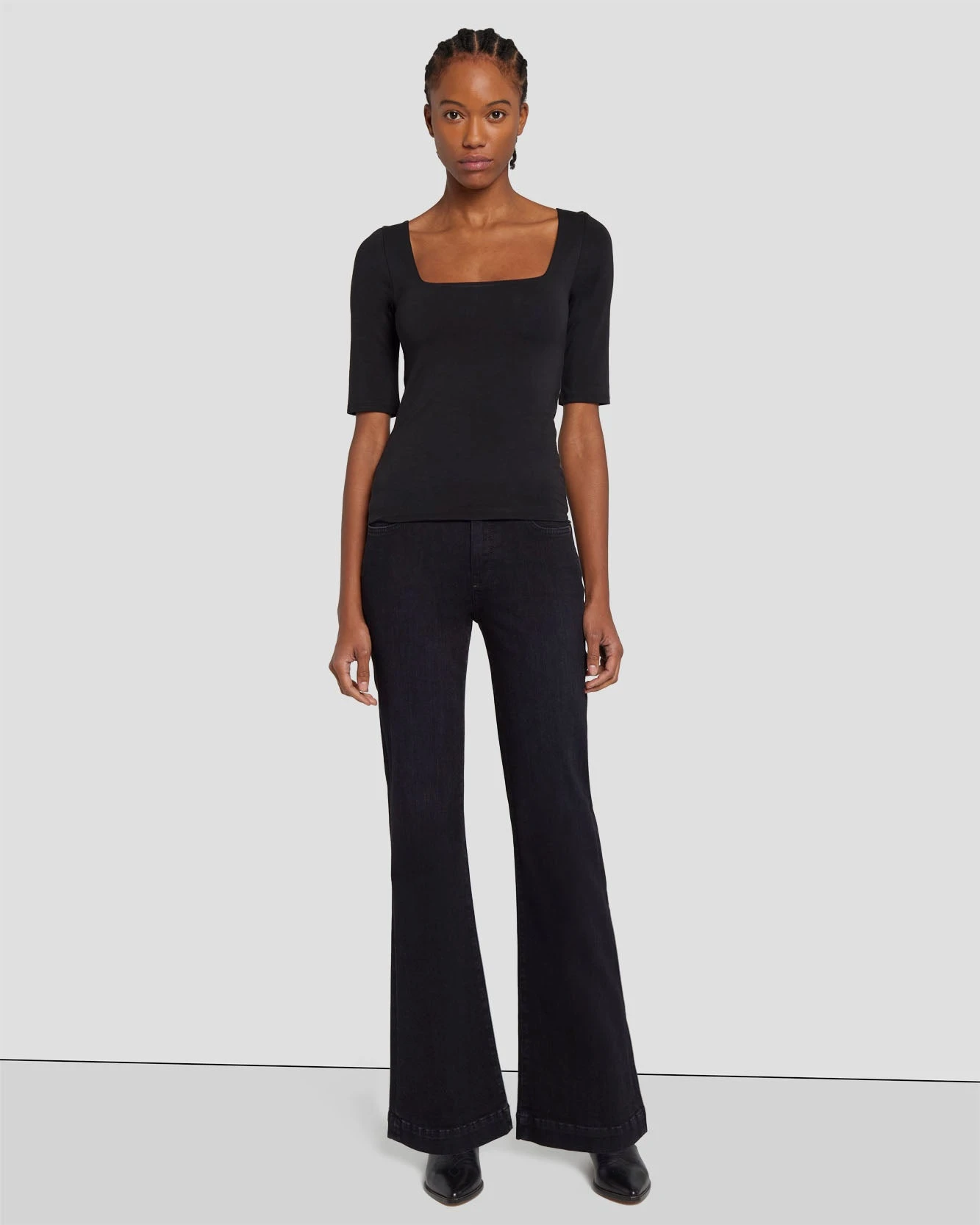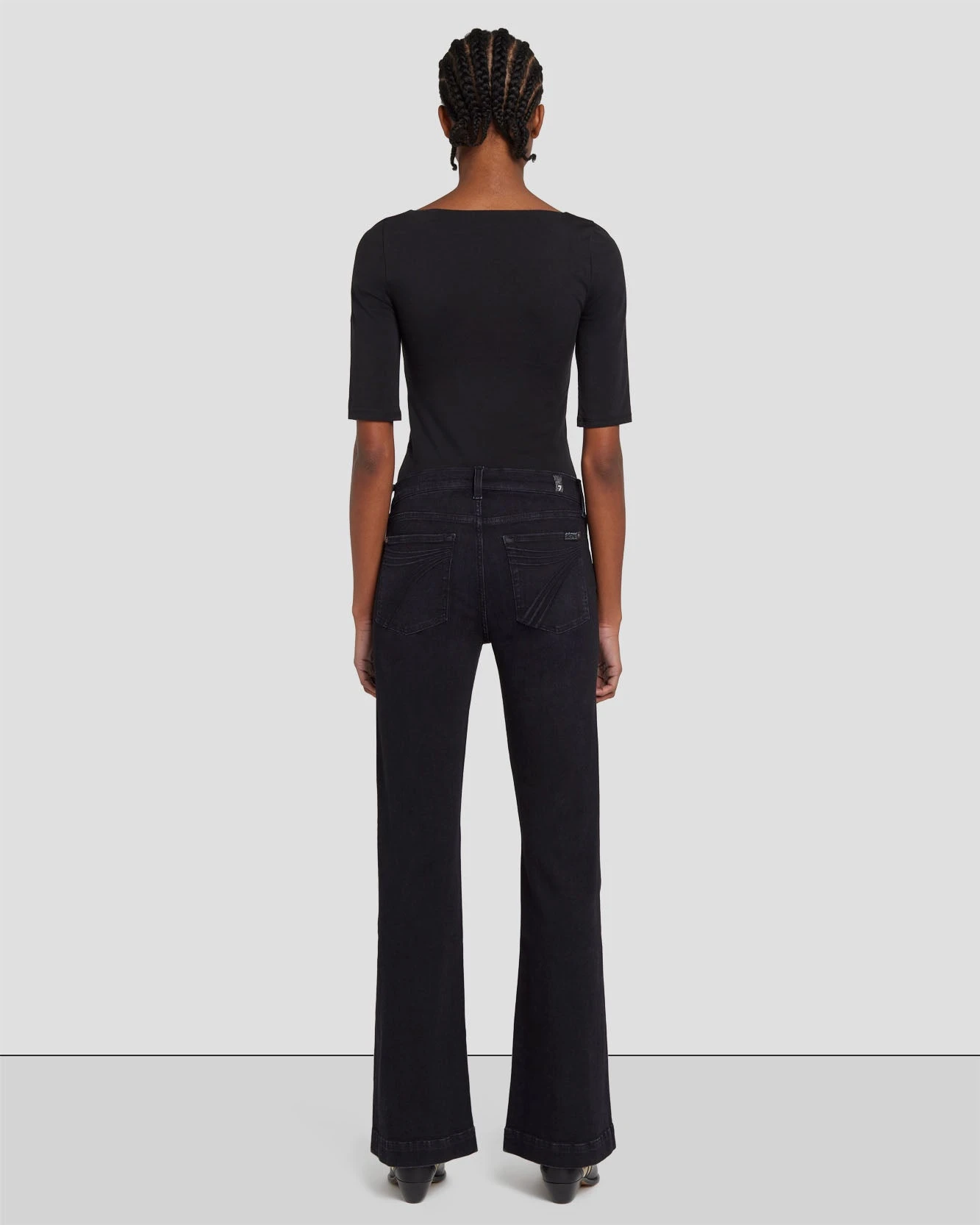 Our well-loved Dojo now comes in a shorter inseam – no tailoring needed. This washed black denim features subtle whiskering and fading for that perfectly worn-in look.