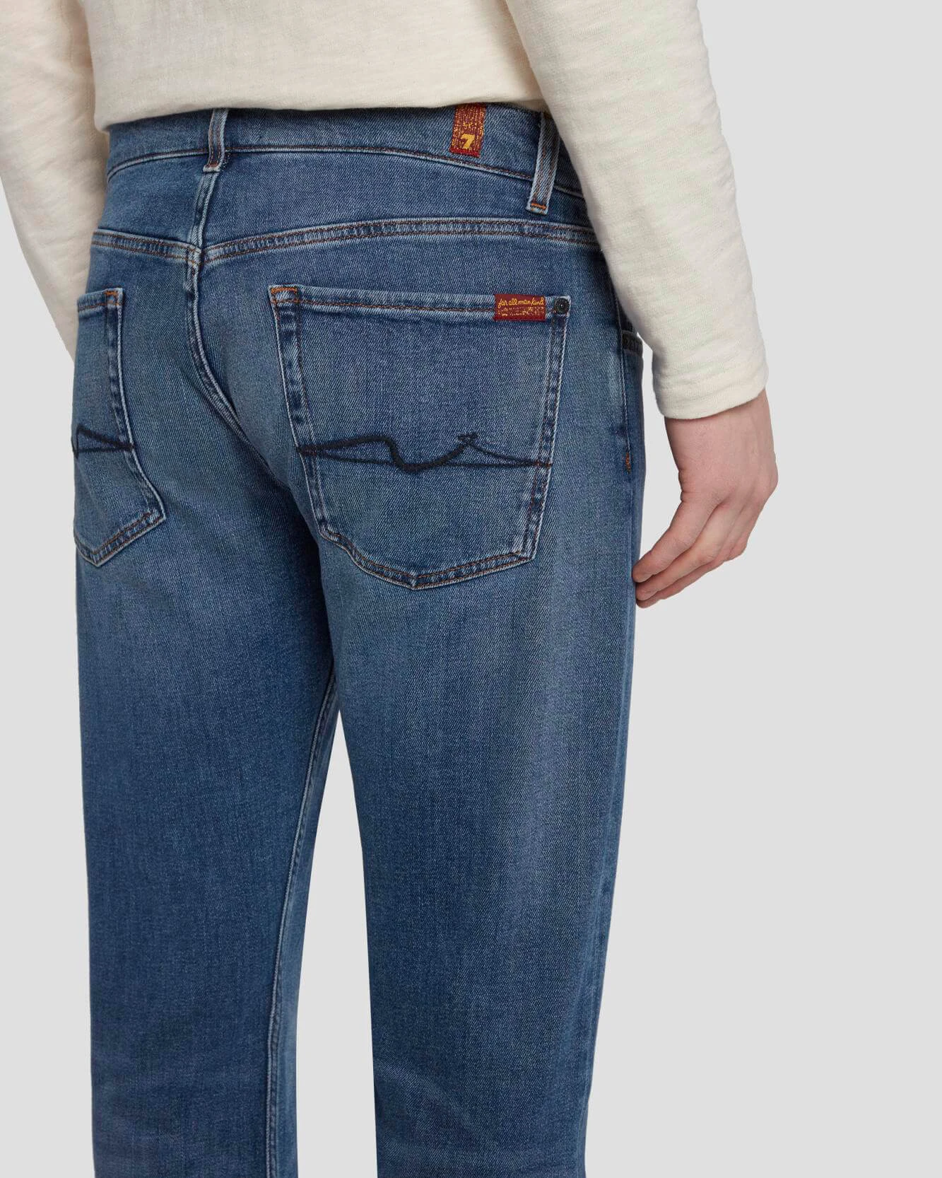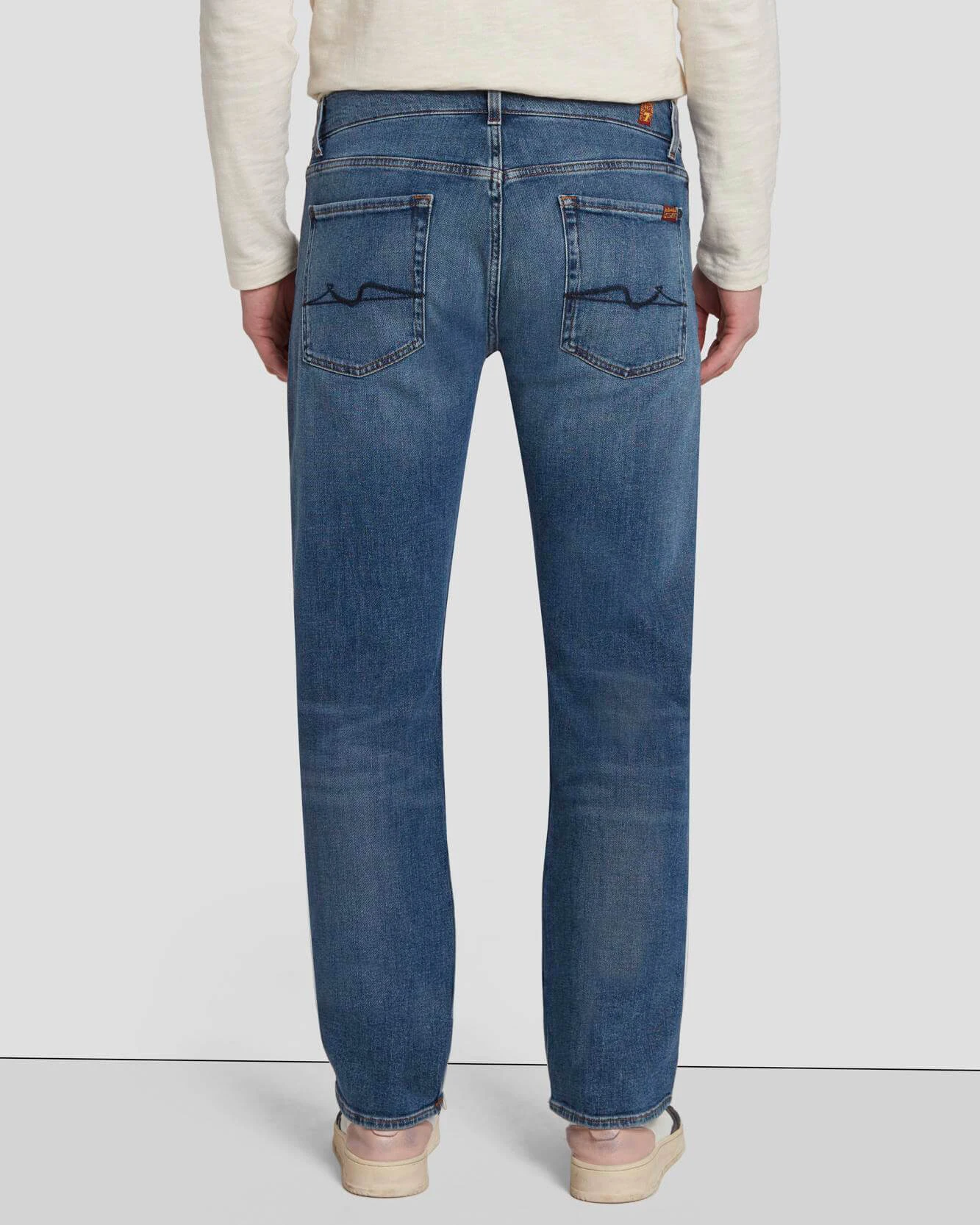 Our classic straight fit. Perfectly balanced from hip to hem and crafted in signature premium denim with comfort stretch for all-day wear. This medium blue wash features heavy whiskering and sanding for that lived-in look, while our iconic 7 squiggle embroidery on the back pocket adds the signature 7 touch.