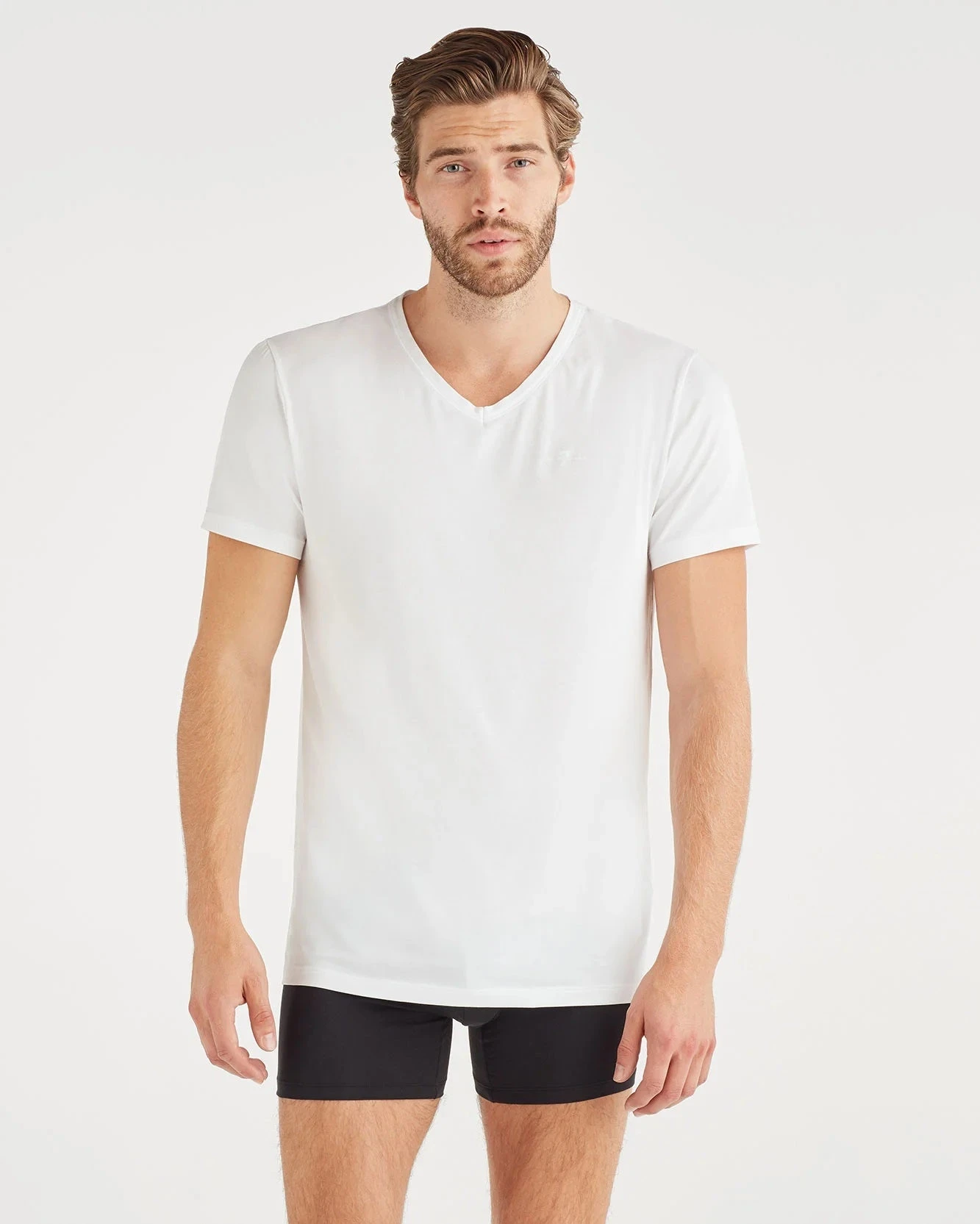 Upgrade your tee shirt game with our V-Neck Tee 2 Pack in crisp white. Featuring 4-way stretch for ease of movement all day long, these essential tees were designed to stay soft and smooth wash after wash. Wear them solo or layer under a denim shirt for a cool look.