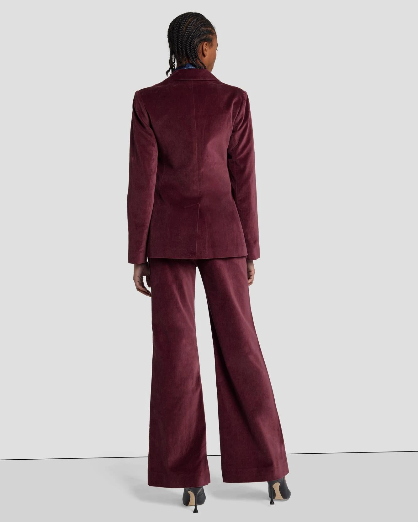 Because who doesn’t need a burgundy, velvet blazer? This streamlined blazer is elevated with textural play and is sure to turn heads. Wear it with classic blue denim or pair it with the matching velvet trouser to really make an impact.